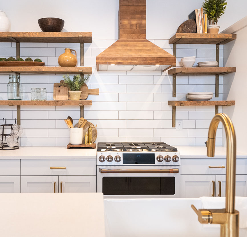 Our kitchens are one of the defining features of our homes, boasting stylish Canyon Creek kitchen cabinets, an over-the-range hood, and open shelving that complements our open-floor plans. The frameless, soft-close doors and drawers ensure functionality and aesthetic appeal, while the granite or quartz countertops add an elegant touch and are durable and easy to maintain.